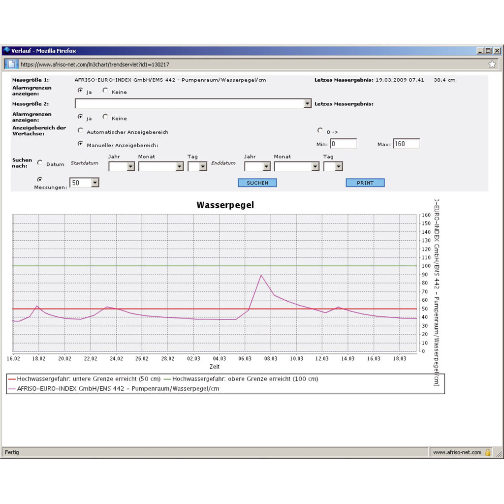 Es können zwei analoge Messwerte und zwei digitale Grenzwerte mit einem Gerät überwacht werden. In Verbindung mit dem AFRISO Net Webservice können zusätzlich Daten visualisiert, aufgezeichnet und verwaltet werden.
